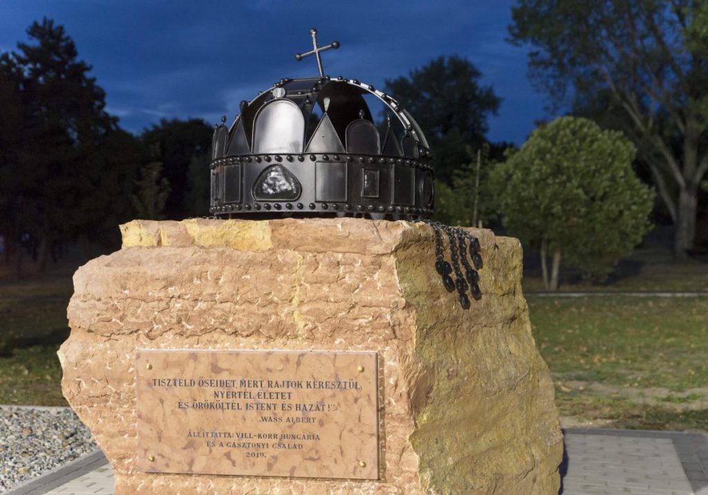 Gyõr, 2019. augusztus 18. Az újonnan felavatott Szent korona-szobor a Gyõrhöz tartozó Ménfõcsanakon 2019. augusztus 17-én. MTI/Krizsán Csaba