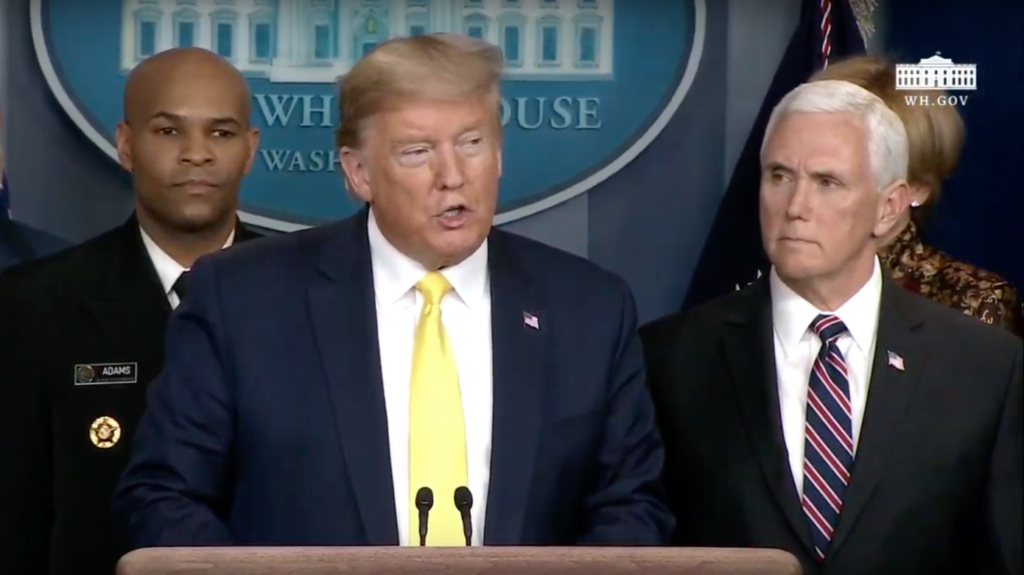 A Fehér Házban tartott sajtókonferencián részt vett Mike Pence alelnök, Alex Azar, az egészségügyi minisztérium vezetője, valamint Jerome Adams tisztifőorvos is.