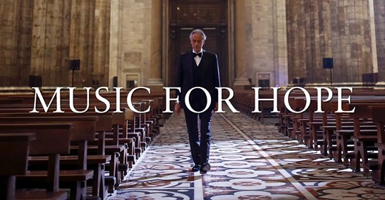 A Music for Hope (Zene a reményért) című előadás megszervezésében Milánó városán kívül a dóm, a Sugar Music, a Universal Music Group és a YouTube is közreműködött. Bocelli a fellépésért nem fogadott el honoráriumot.