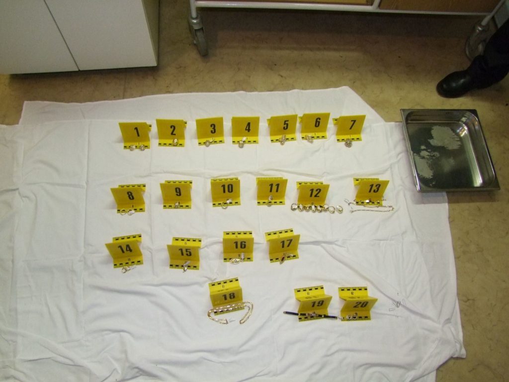 A nyomozás adatai szerint három román állampolgár –két férfi és egy nő- ment be egy nagykanizsai ékszerüzletbe 2020. július 30-án a délutáni órákban, ahol az eladók figyelmét elterelve több mint hárommillió forint értékű aranyékszert loptak el egy tálcán, majd gyorsan távoztak. A nagykanizsai rendőrök adatgyűjtést követően megállapították, hogy a bűncselekmény elkövetését követően a lopással gyanúsítható személyek rövid időn belül egy taxival elhagyták Nagykanizsa területét, és Letenyére utaztak. A tolvajok tudták, hogy lebuktak, ezért az idősebb férfi gyalog elmenekült a városból, de két társát a rendőrök elfogták. A nő a rendőrök kiérkezése előtt testüregébe rejtette az ellopott ékszereket, amiket rosszulléte miatt a későbbiekben önként átadott. A harmadik társukat a rendőrök pár órával később egy benzinkúton elfogták.